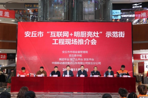 11月26日,山东移动安丘分公司(以下简称“安丘移动”)联合安丘市商场监督管理局,在泰华城中兴广场举办“互联网+明厨亮灶”示范街工程现场推介会。美团、饿了么、京东等网络订餐渠道及泰华二期、茂街等90余家餐饮商户一起参加,加快安丘市外卖餐饮行业阳光化、通明化改变展开方法与经济转型进程。